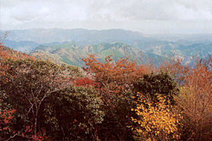 頂上が切り立った岩峰なので、空を突き刺すような勇ましい姿に見えるのが、嶽の森山です。古座川の名勝地「一枚岩」の少し上流に、登山口はあります。石英祖面岩が地表に噴出した成り立ちを持つ嶽の森山、だから登山道では至る場所で見事な岸壁に塞がれることもしばしば。それも一興にしてしまう嶽の森山は、トレッキングには最適な山といえるでしょう。特に、ナメ床状の沢道を足形の窪みに沿って山上の峰に上がる時には、日頃の鍛錬が実力を発揮します。