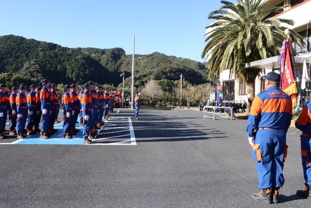 新春恒例の式典「古座川町消防団出初式」が令和6年1月14日(日)樫原一好消防団長以下69名の消防団員と古座消防署員が参加し役場前駐車場で盛大に開催されました。